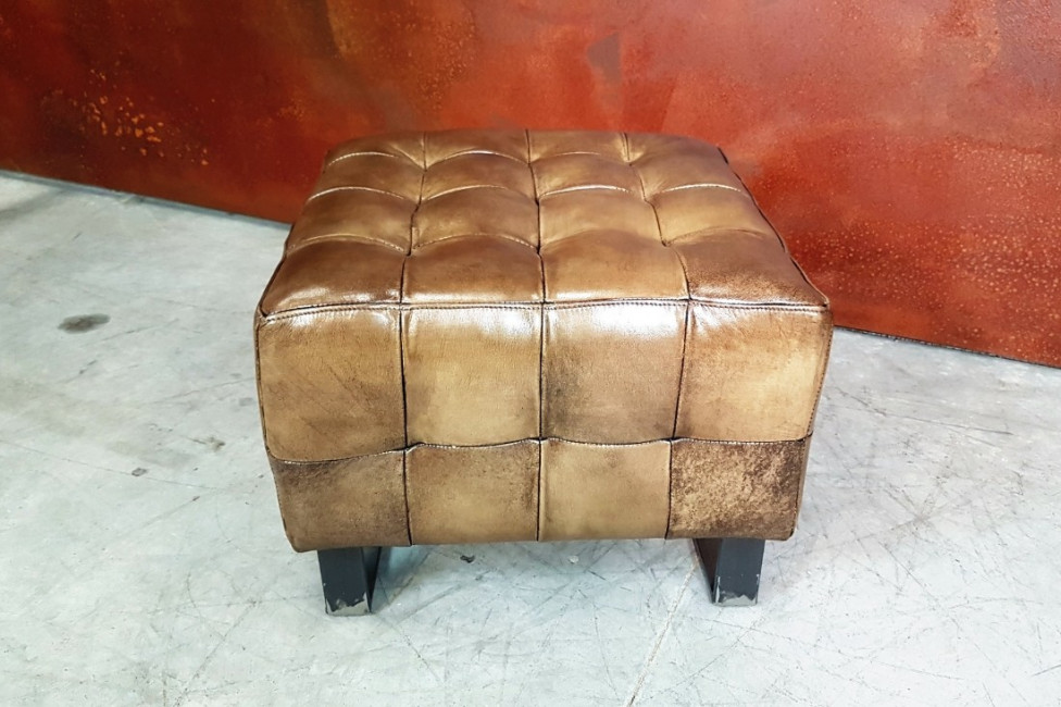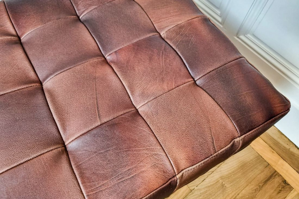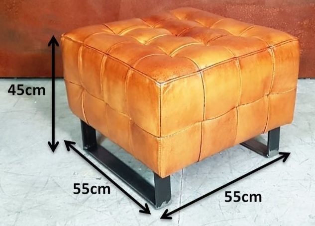 - Pouf carré en cuir : parfait pour un salon moderne ou minimaliste