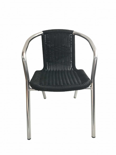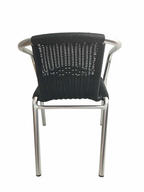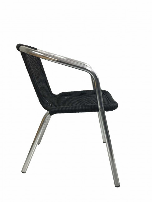 - Dos et assise en tressage PE de Ø 2,8 mm, de couleur noir et armé d'un fil d'acier interne.