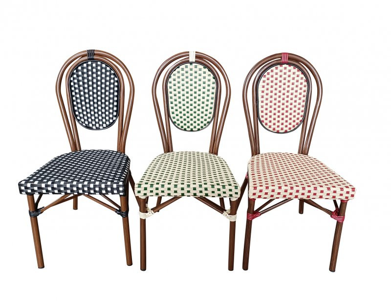 Cette chaise bistrot style rotin noire et blanche est idéale pour une utilisation extérieure en terrasse de café, restaurant, glacier.