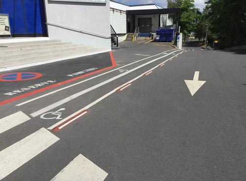 14/02/202331 separateurs de voies franchissables rouge 1200x150x450 avec fixations asphalte