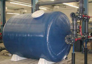 DESCRIPTION : Filtre polyester vertical multimédia avec enroulement filamentaire, trou d’homme supérieur et collecteur crépiné.