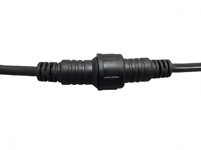 - Branchement en série : dévisser le câble d'alimentation de 2 m de la seconde guirlande et la visser à l'extrémité de la première guirlande. Les guirlandes branchées en série après la première ont donc une longueur effective de 10 m de Long.