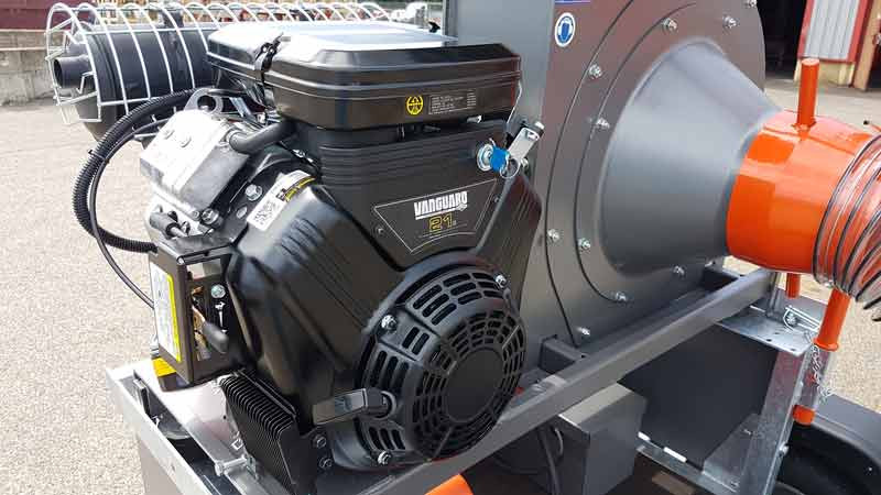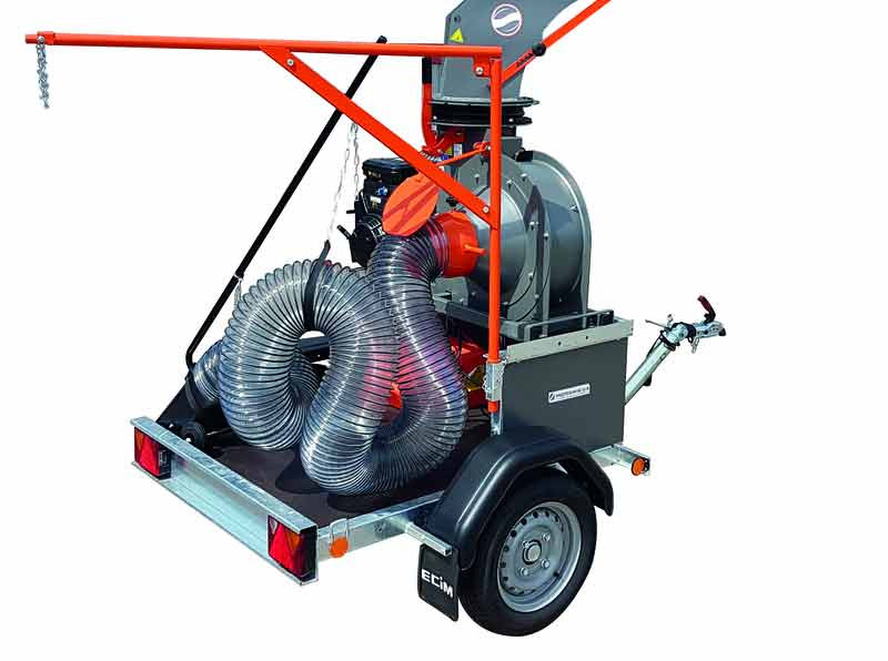 aspirateur de feuilles homologué sur remorque routière peut aspirer un volume important de feuilles grâce à son tuyau Ø 200 mm.
