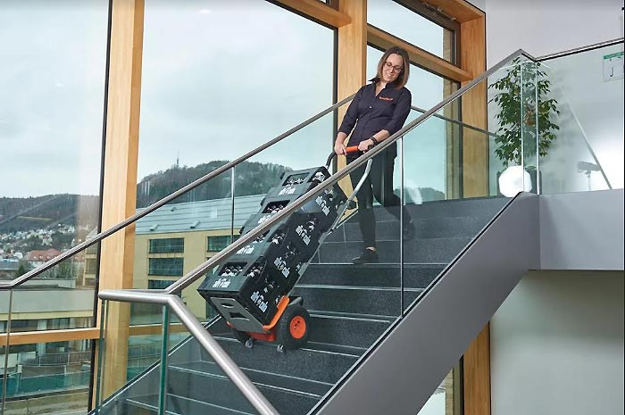 Le système motorisé du diable monte-escalier limite les troubles musculo-squelettiques (TMS) et réduit la fatigue lors du franchissement de marches avec des charges lourdes. Il permet ainsi aux opérateurs de travailler dans de meilleures conditions de sécurité et de confort.