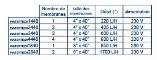 Ces modèles sont équipés de membranes de différentes tailles et permettent une purification efficace de l'eau avec des débits variés allant de 220 à 1700 l/h.