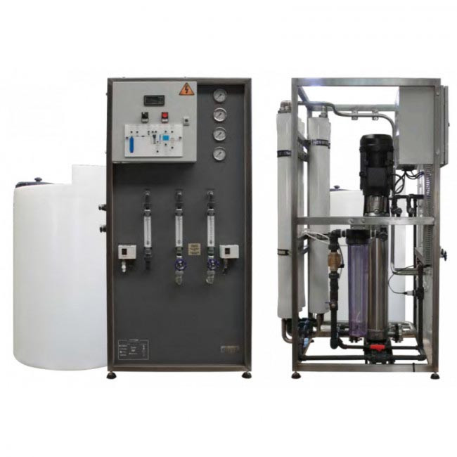 Cet osmoseur industriel puissant et gros débit est un excellent rapport qualité / prix avec une capacité de production variant de 5 000 litres à près de 24 000 litres d'eau pure par jour pour des eaux variant de 0 à 10 000 PPM.