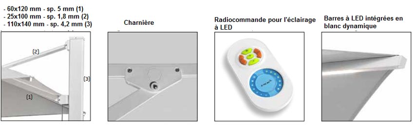 Avec son armature en aluminium laqué et son ouverture escamotable, il allie robustesse et facilité d'utilisation.
