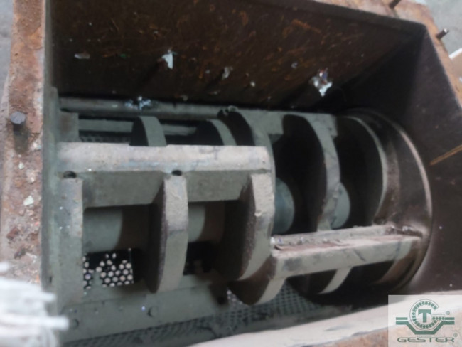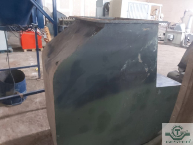 Manque: panneau électrique, moteur, poulie, courroies, trémie pour sortie de matière, lames.