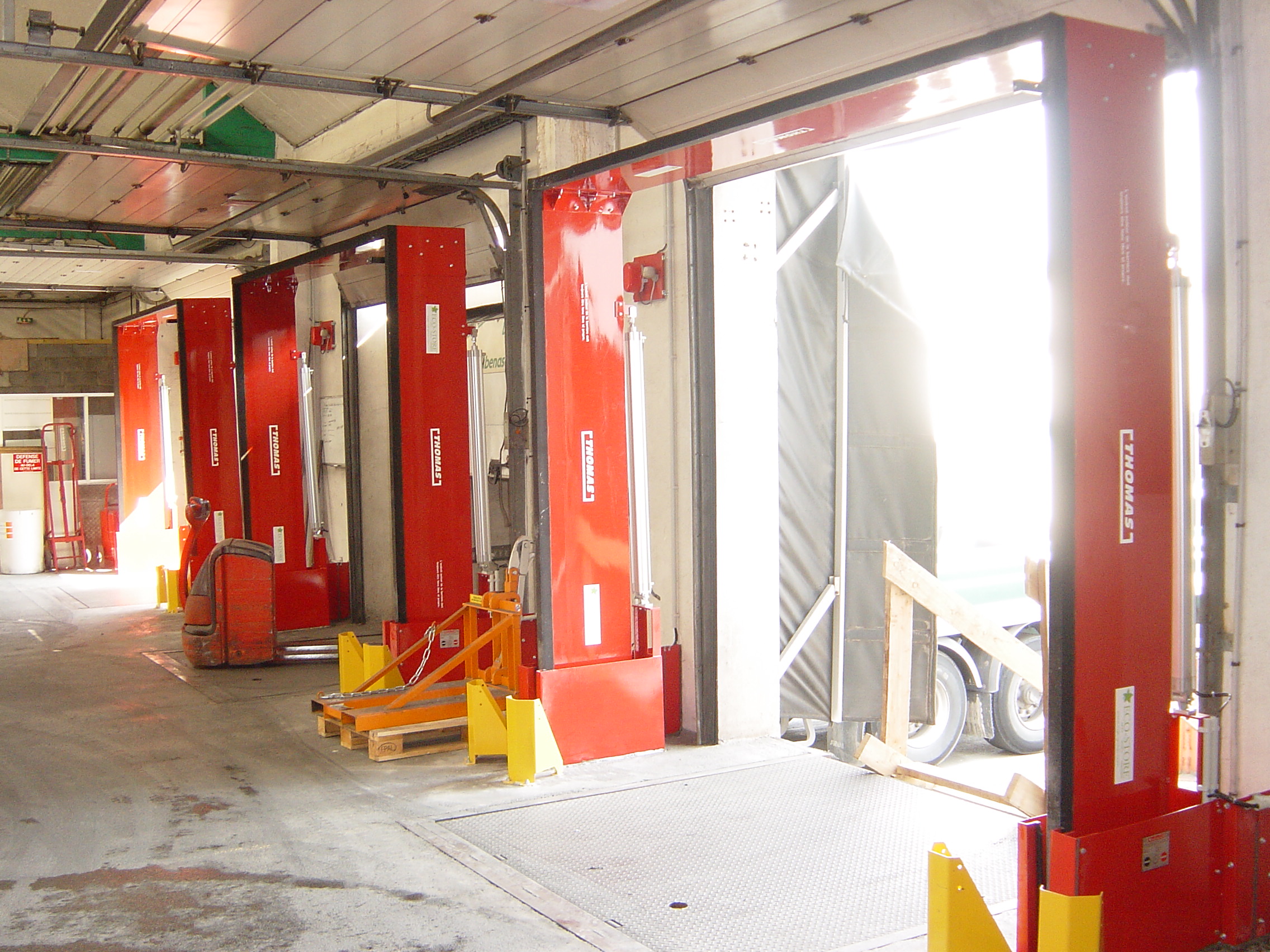 Il y a 4 portes sectionnelles avec quais niveleur, et 3 portes sectionnelles standards.