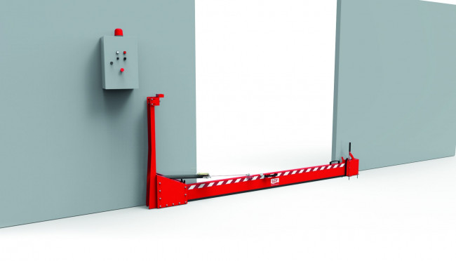 La barrière de rétention semi-automatique se trouve, en position de repos, perpendiculaire au sol. Elle est tenue dans sa position verticale par un électro-aimant. En cas d’alerte (qui vient par exemple d’une centrale d’alarme ou d’un détecteur de fluide), la barrière est libérée de l’aimant et se ferme doucement par vérin hydraulique qui ralentit la descente. La barrière doit être remontée manuellement.