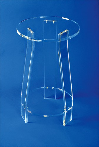 Tabouret bureau en plexiglas rond et guéridon hauteur 68cm.
