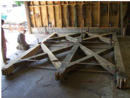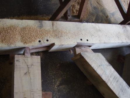 Taillés à la main en respectant les caractéristiques des bois, ils sont assemblés de manière traditionnelle par tenons mortaises avec embrèvements et chevilles d’acacia.