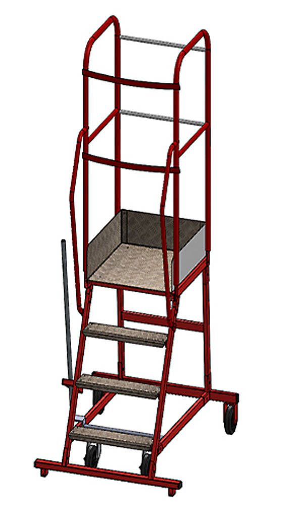 27/03/2026Échelle roulante à quatre roues pouvant atteindre 3 mètres de hauteur munie de freins de sécurité.