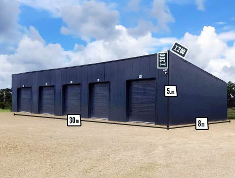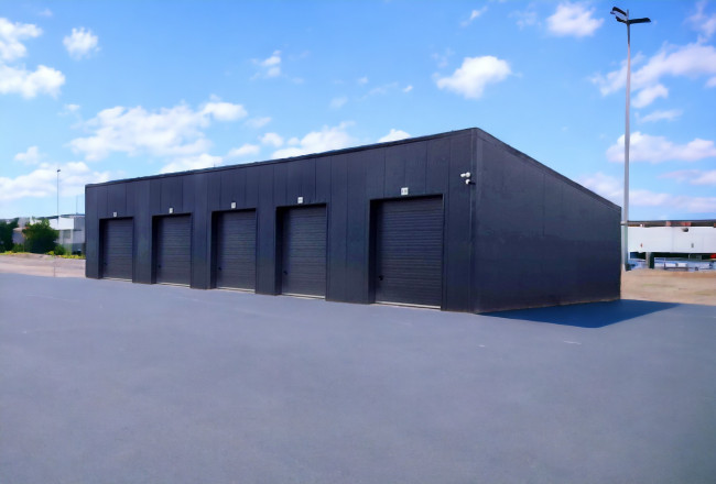 - 240m² divisée en cinq cellules locatives de 48m² chacune allie esthétisme et fonctionnalité, offrant des espaces de stockage distincts et adaptés, dans un cadre visuellement harmonieux.