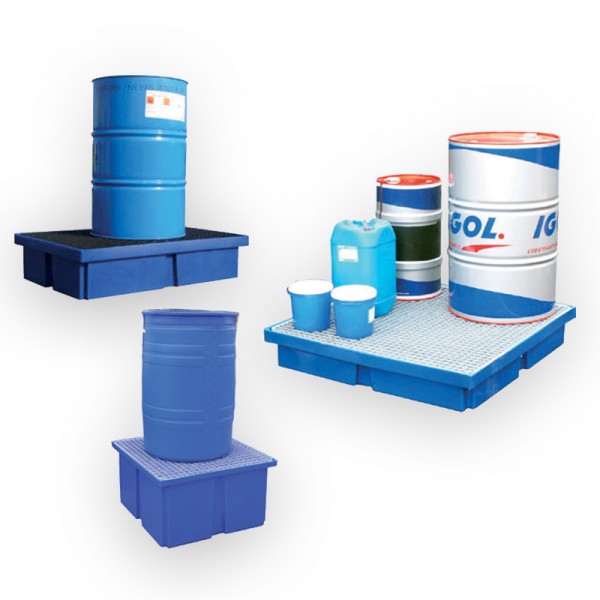 Bac de rétention avec caillebotis en PE - Capacité de 1 à 4 fûts 220 L
