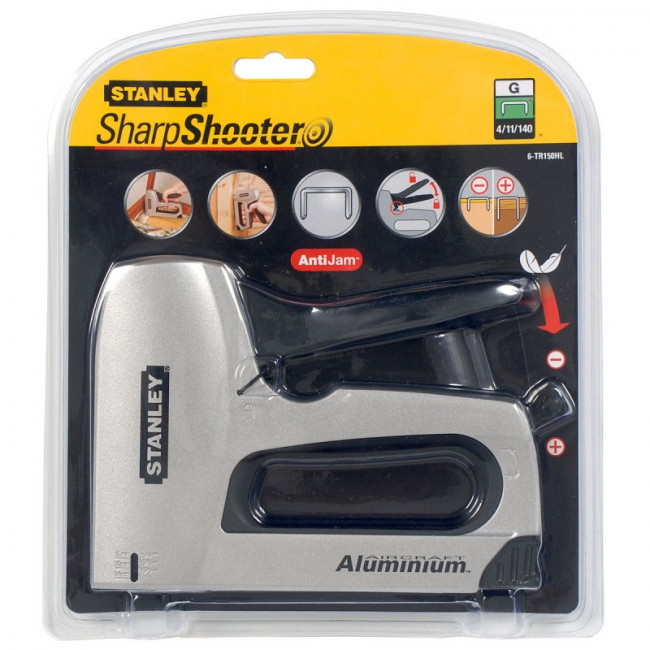Cette agrafeuse manuelle en aluminium est compatible avec les agrafes type G de 6 à 14 mm,
