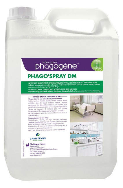 - Peut être utilisé en pulvérisation sur les murs, les plafonds et le mobilier des services de soins et de chirurgie