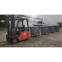 22/05/2024Besoin d"un devis pour des timons et crochets pour la manutention de plusieurs containers poubelles de 660L ou 770L avec une pente de <10% sur un sol aspérité. Merci pour votre retour.
