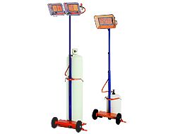 - Étudiés pour les postes de travail isolés ou itinérants, les radiants gaz mobiles sont montés sur chariot avec roues, stabilisateurs et mât télescopique (de 1 à 2,5 m),