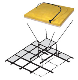 Le plafond rayonnant modulaire (PRM) est constitué : • d’une ossature de dimensions 600x600 mm en 24 mm ou 15 mm composée de suspentes (tiges filetées ou suspentes rapides) de cornières de rive, de porteurs (éventuellement d’une ossature primaire) et d’entretoises. • de modules rayonnants et de modules neutres • de lignes d’alimentation spécialisées PRM de 10, 20, 30,40 ou 50 sorties • de boites de dérivation avec alimentation, protection,régulations, programmation • éventuellement d’un isolant complémentaire en laine de verre
