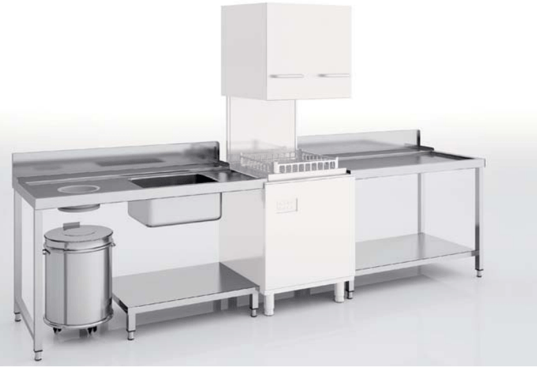 Ce meuble pour lave-vaisselle est fabriqué en acier inoxydable AISI 304 18/10 avec une finition satinée.