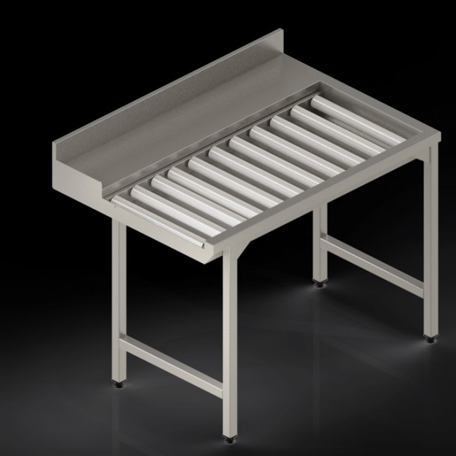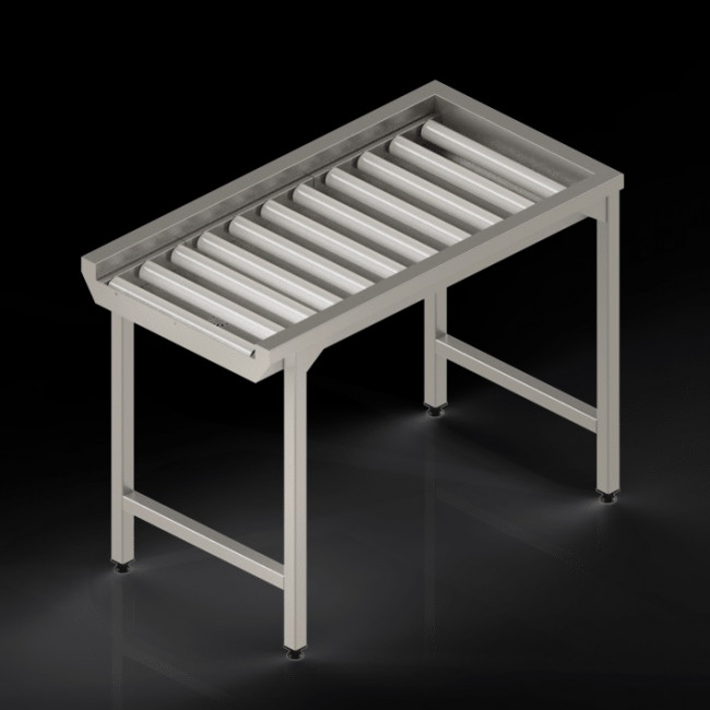 - Dessus inox avec chemin de glissement à rouleaux d’une largeur de 540 mm et pente intégrée pour écoulement