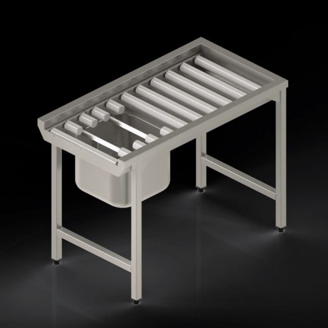 - Table de laverie inox à rouleaux avec bac