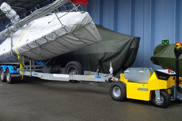 16/06/2021tracteur pousseur pour tracter des bateaux et caravanes distance environ 600m. Charge environ 3 Tonnes. Facile à manœuvrer avec un système d"attelage avec levage.