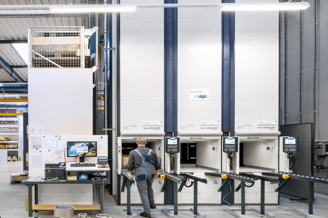 Gagner en efficacité avec le magasin de palettes de type Lift qui s'intègre au plus proche de l’endroit où il est le plus utile : près des ateliers de montage et de production.