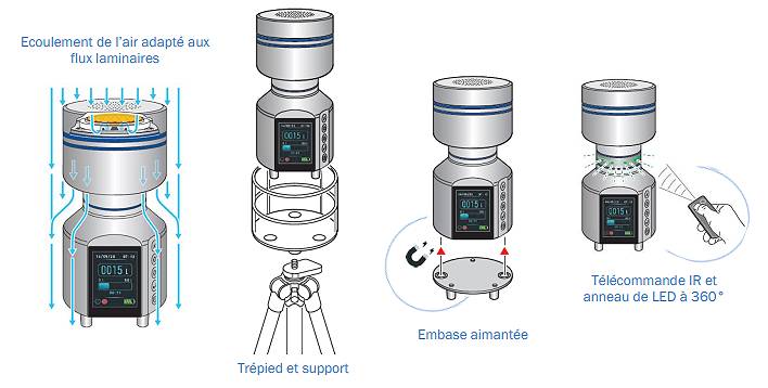 Les Capteurs d'air portable sont adaptés à diverses applications en environnements contrôlés tels que les salles blanches, isolateurs et laboratoires.