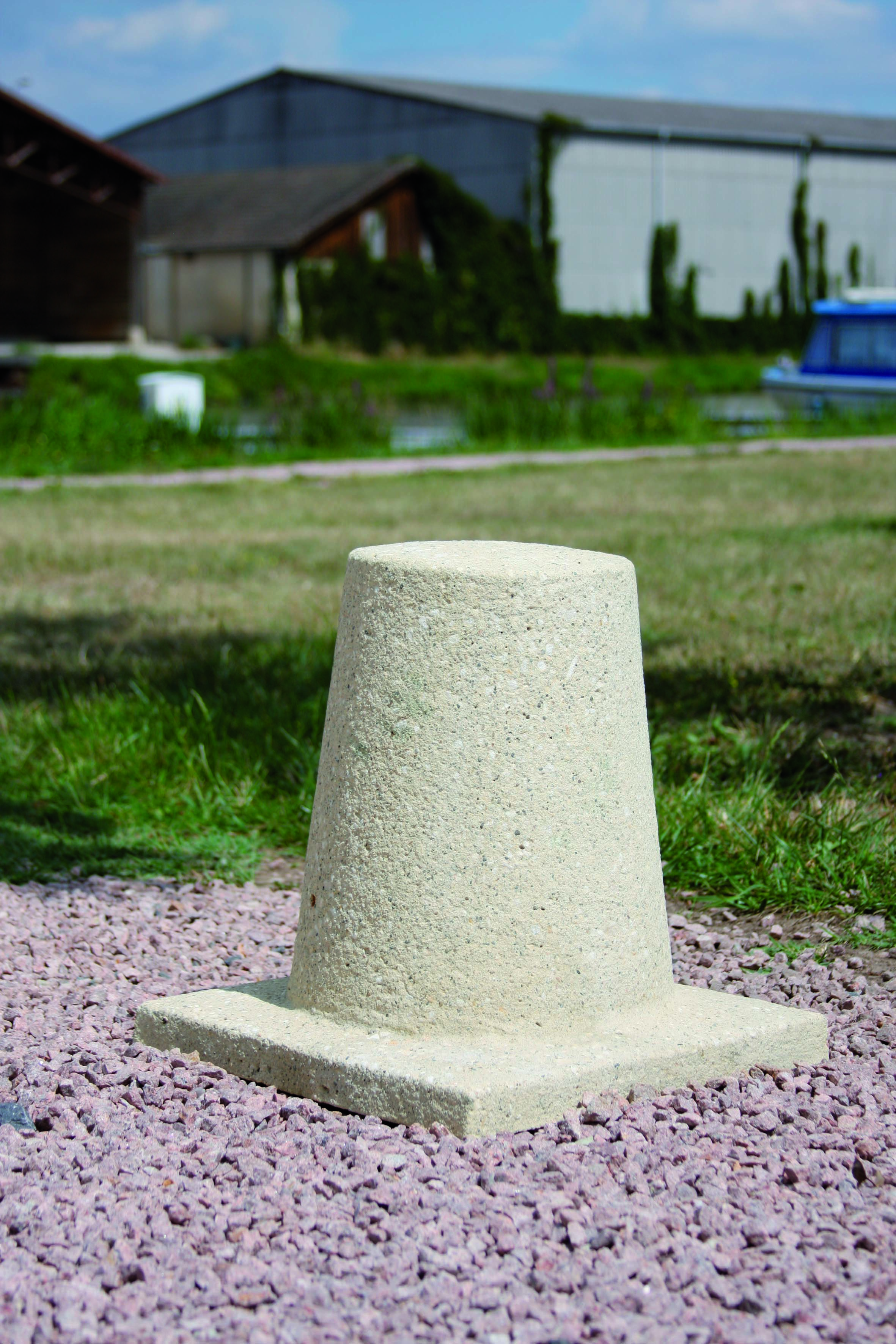 Cette borne en béton 40 cm est auto stable avec un aspect sablé ton pierre.