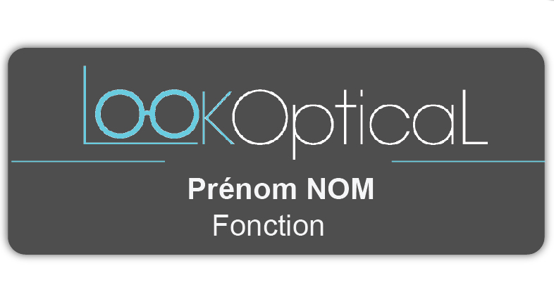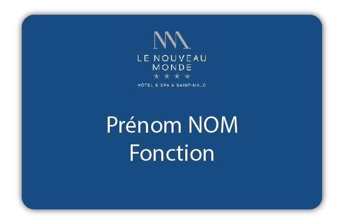 30/09/2022Badges plastique blanc avec écriture bleu marine du prénom et fonction en dessous( ex: Franck préparateur » et notre logo personnalisé à gauche.