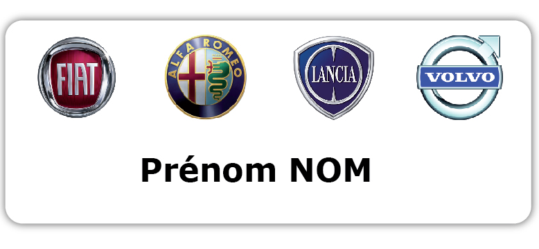 je recherche pour notre client, un badge de dimension 70mm x 25 mm (si possible angles droits)avec fixation par aimant, fond blanc avec personnalisation nom/prénom/fonction + logo quadri.