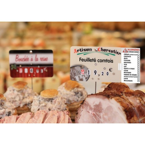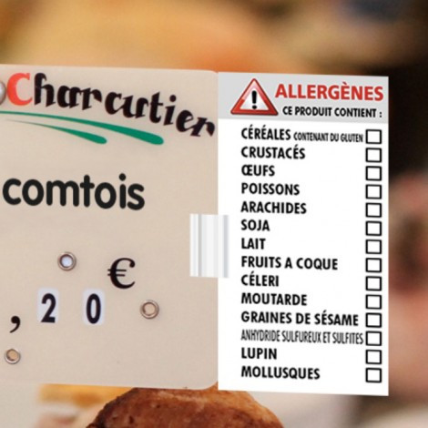 Simple à utiliser, pour l'affichage des allergènes en charcuterie-traiteur, boulangerie-pâtisserie, restauration ou vente à emporter.