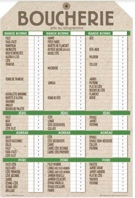 Les étiquettes prix pour boucherie permettent une organisation efficace de la vitrine ou du rayon de viande.