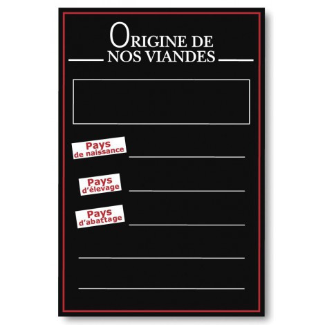 Le panneau ardoise « Origine de nos viandes » permet de signaler clairement la provenance des viandes proposées en point de vente.
