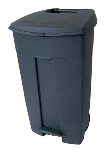 Ce conteneur mobile à pédale de 120 L est conçu pour la gestion des déchets dans divers environnements professionnels.