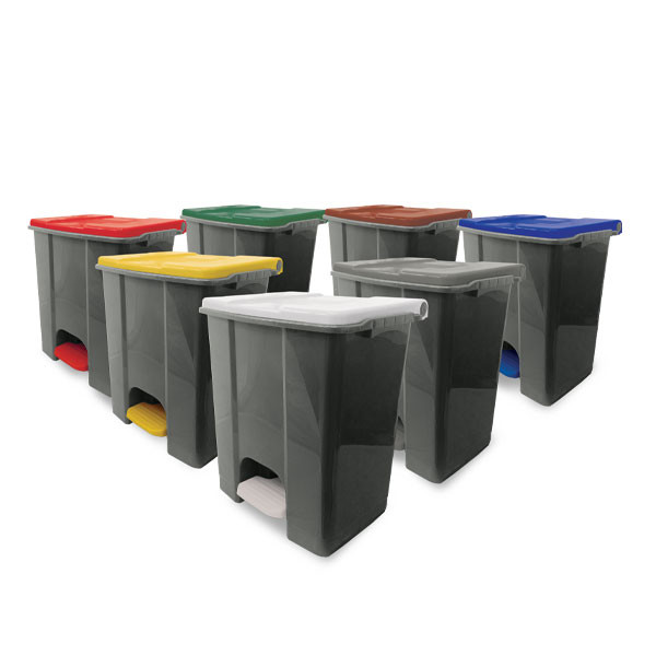 - Couvercles et la pédale colorés pour faciliter le tri sélectif