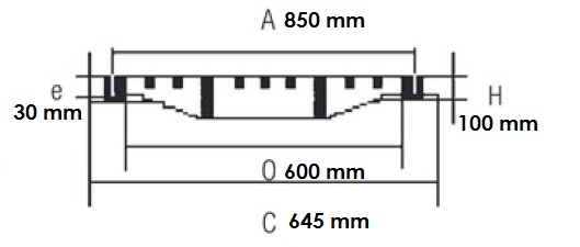- O : Dimension ouverture du passage : 600 mm