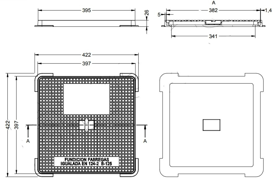 Avec ses dimensions extérieures de 422 x 422 mm, notre couvercle hydraulique fonte s'adapte aux standards de l'industrie tout en facilitant votre logistique d'approvisionnement.