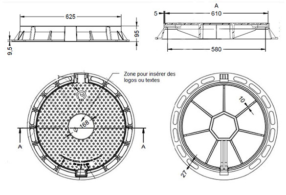 Tampon de chaussée rond D-400 Classe : D 400 - Norme : EN 124-2 Code fiche produit :28547543 devis et délai , merci