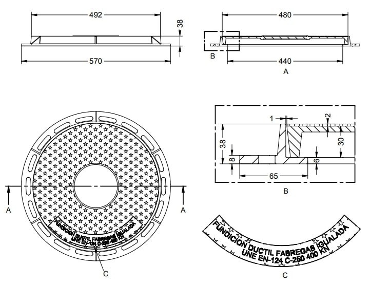 Conçu selon la norme EN 124-2, il répond aux exigences de la classe de charge C 250, ce qui le rend adapté aux zones carrossables, piétonnes et légères.