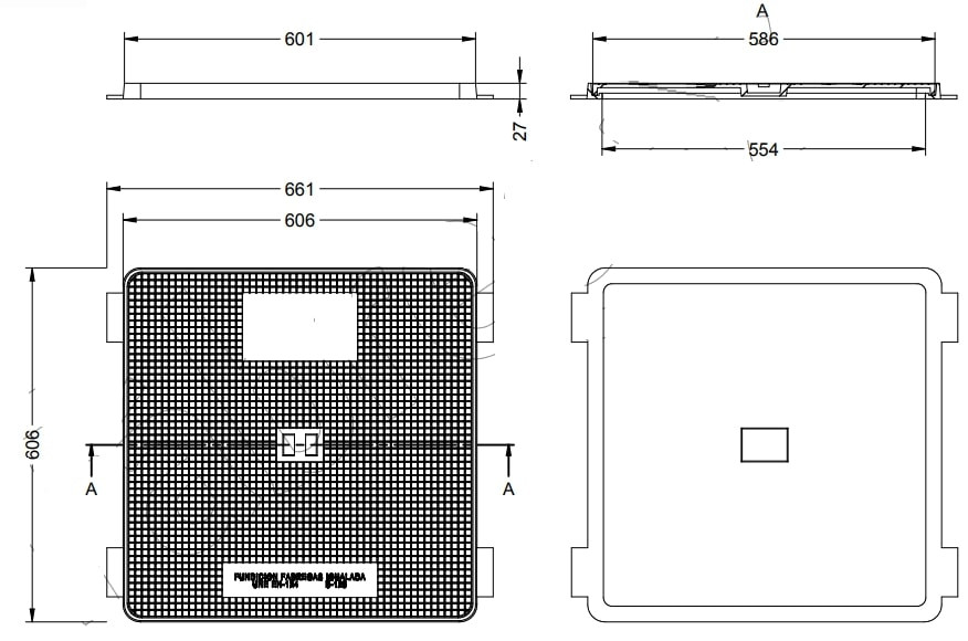Le regard affiche des dimensions extérieures de 616 × 616 mm, ce qui lui permet de s’intégrer facilement dans des ouvrages standards.