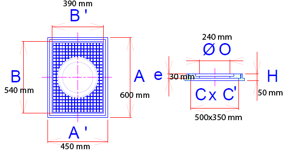 - O : Dimension ouverture du passage : 500 x 350 - 700 x 400 mm