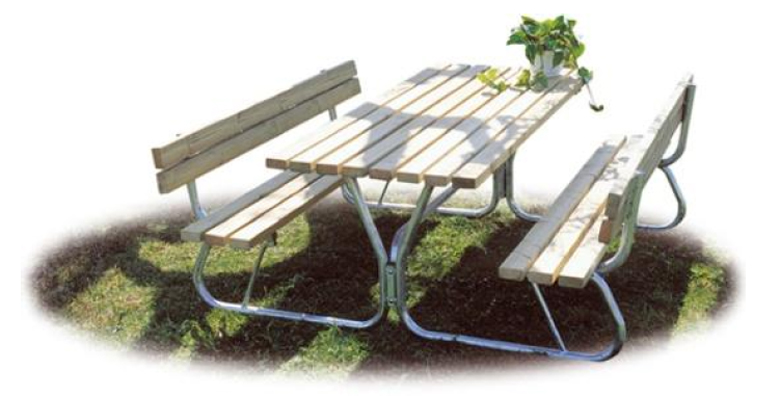 Cette table de plein air en bois est un mobilier urbain à placer dans les espaces publics :