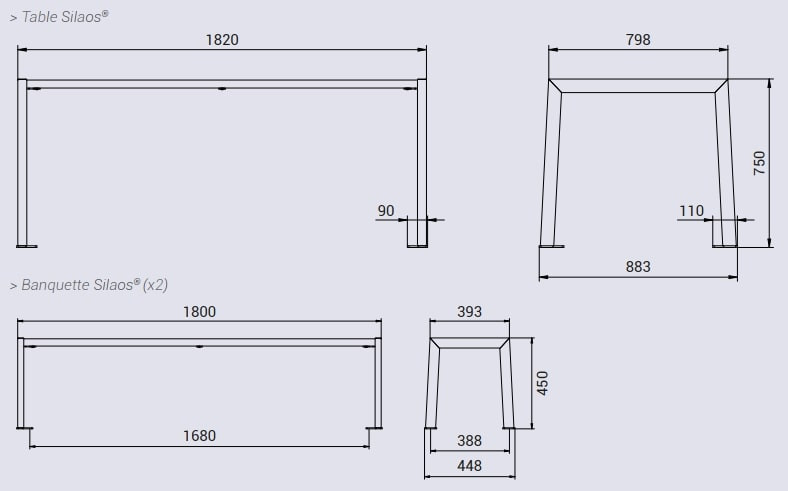 - Dimensions : long. 1820 x larg. 798 x haut. 750 mm