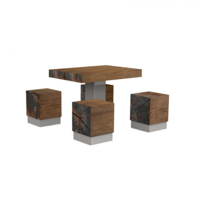 Ensemble de pique nique composé d'une table et 4 tabourets pour usage extérieur.