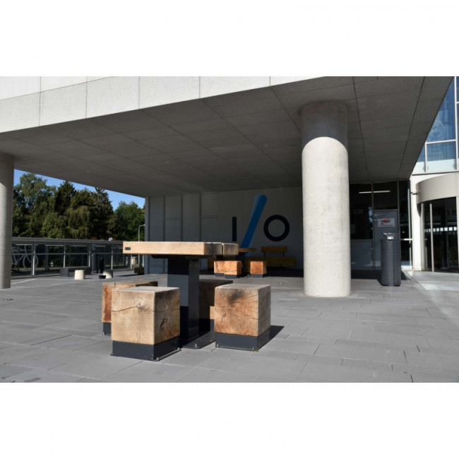 Piètement acier 4 x 150 x 150 mm pour la table, galvanisé à chaud et peint double couche 120μ en teinte RAL au choix |