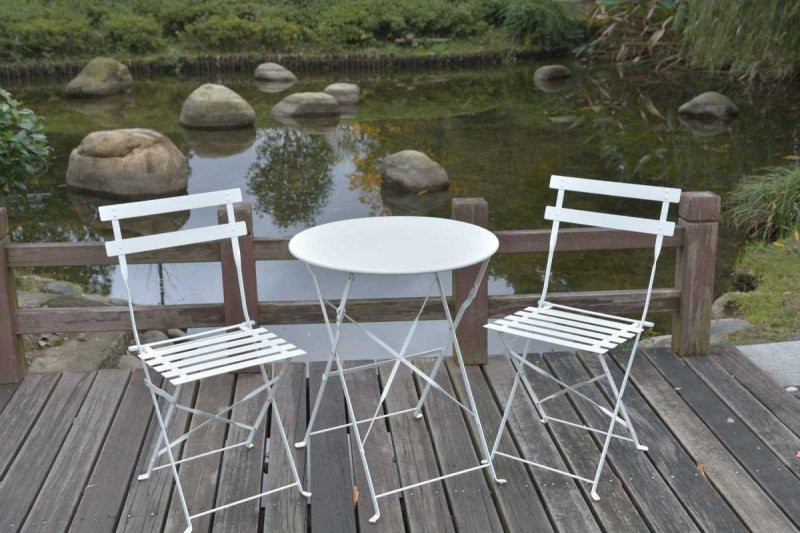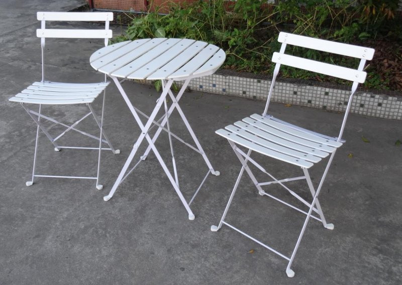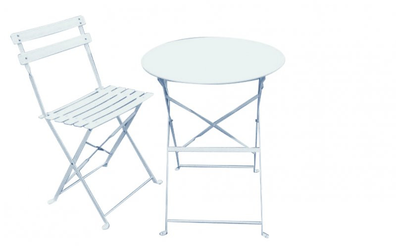 Cette table guéridon pliante métallique est idéale pour une terrasse ou un balcon.