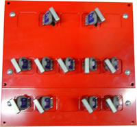 CARACTERISTIQUES : Matière : Boîtier = Tôle d’acier pour le boîtier Finition : Peinture polyester rouge (RAL 3000) Options : Contact 1O-1F sur une (ou plusieurs) entrée(s) de clé de la 1ère ou la dernière rangée (nous consulter), Spécial : Herse à cadenas Cache entrée de clé : Inox